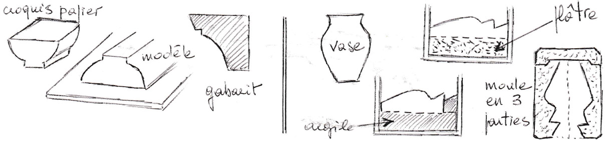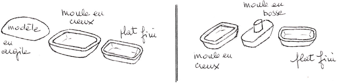 Les moules en creux sont fabriqués à partir d’un modèle plein en argile.