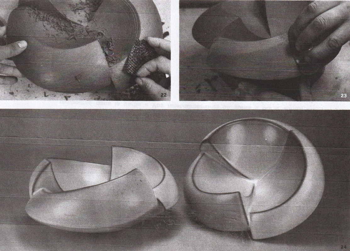 Si la poterie au tour, et même au colombin, se fait jusqu’à un certain point d’elle même, il n’en est rien pour le travail à la plaque : ici le modeleur agit en maître et la terre reste entièrement passive.