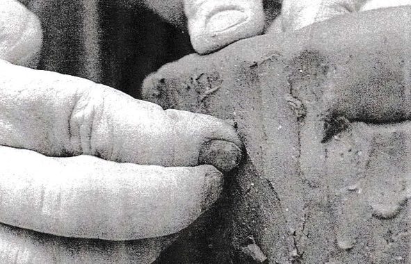 Réaliser 2 tablettes d’argile et y tracer une entaille de 10 cm. de long. Faire sécher les tablettes gravées en les retournant souvent pour éviter le gauchissement.