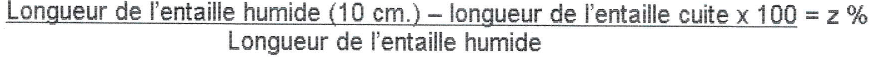 Le pourcentage « x » de retrait au séchage est ainsi obtenu :